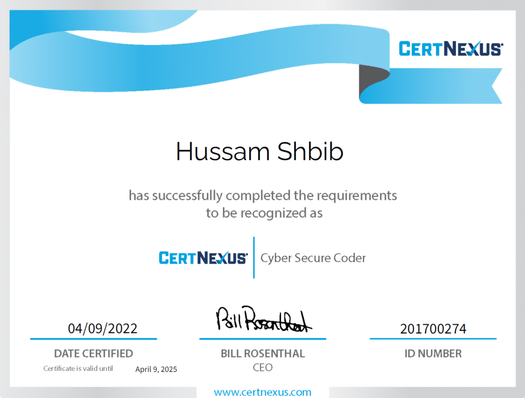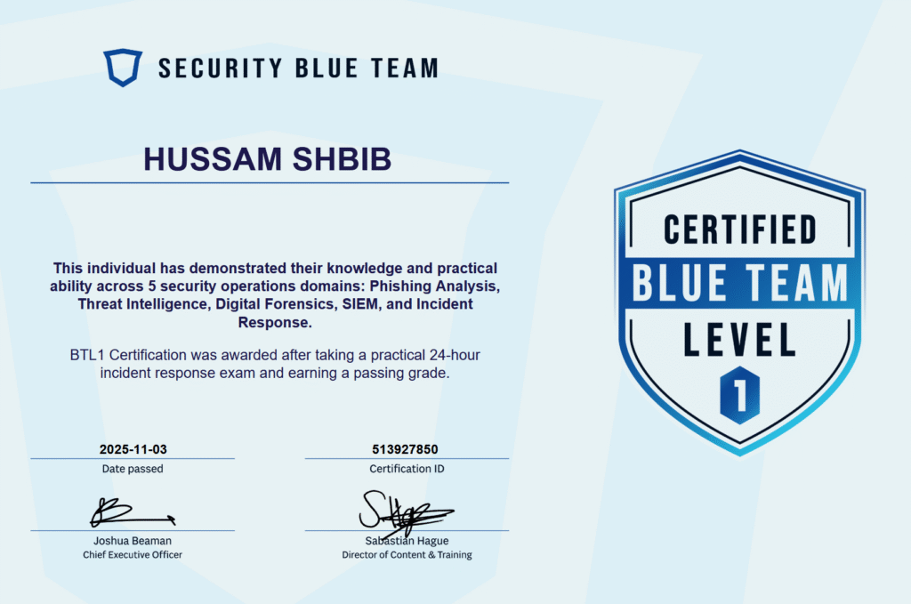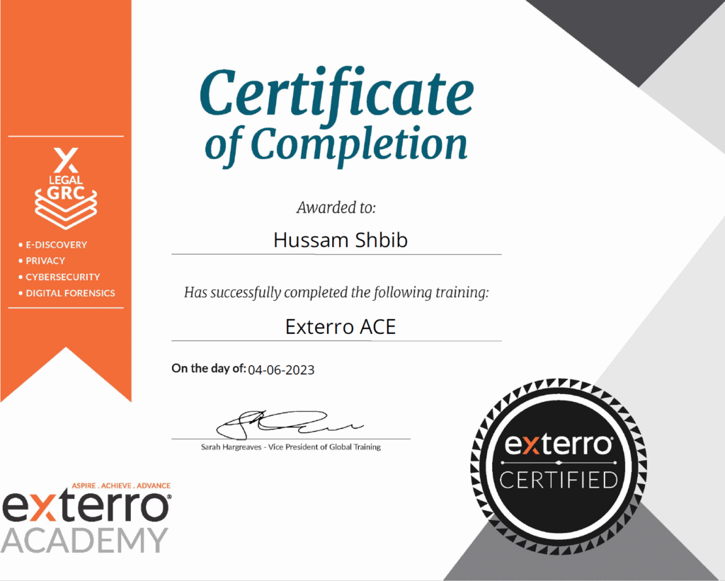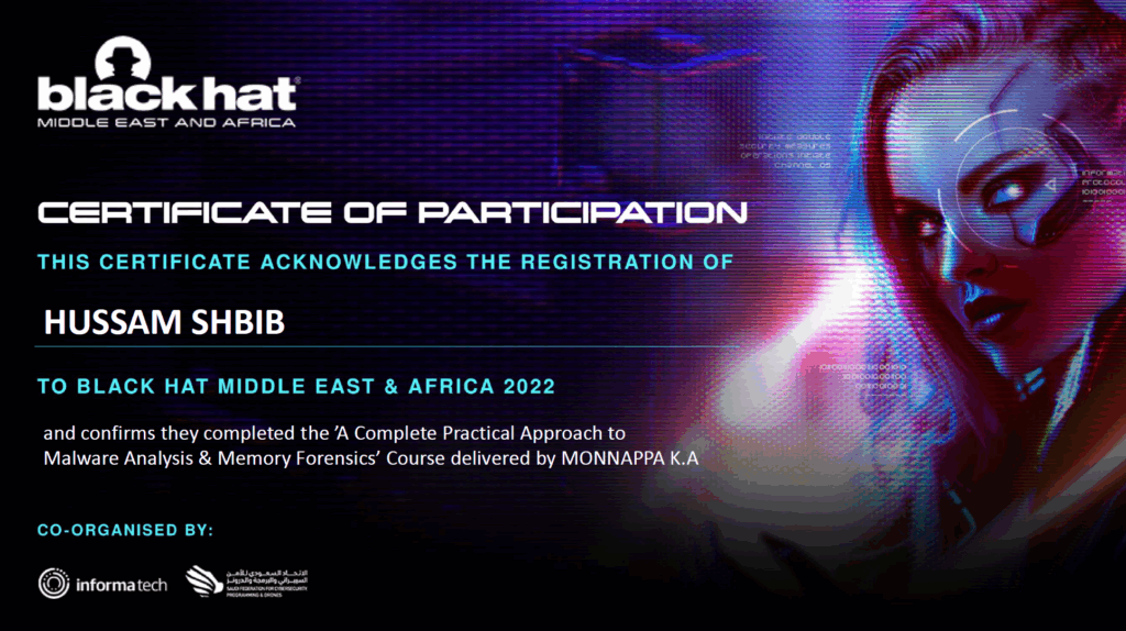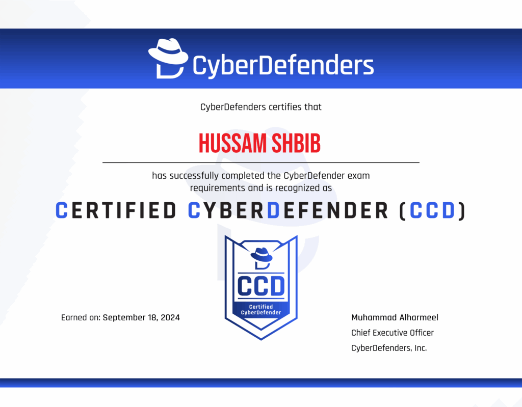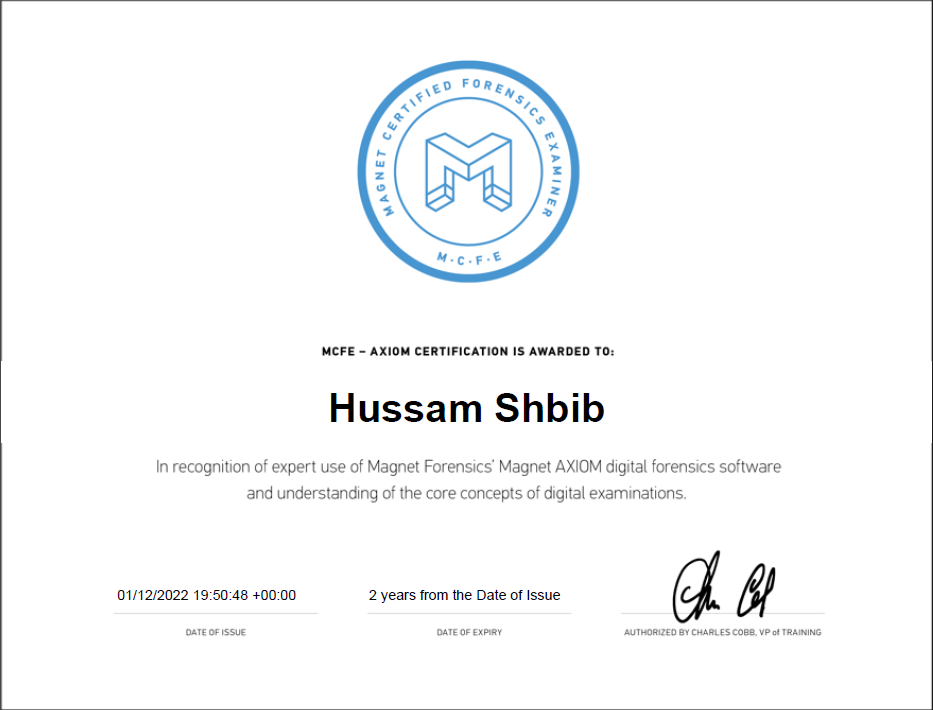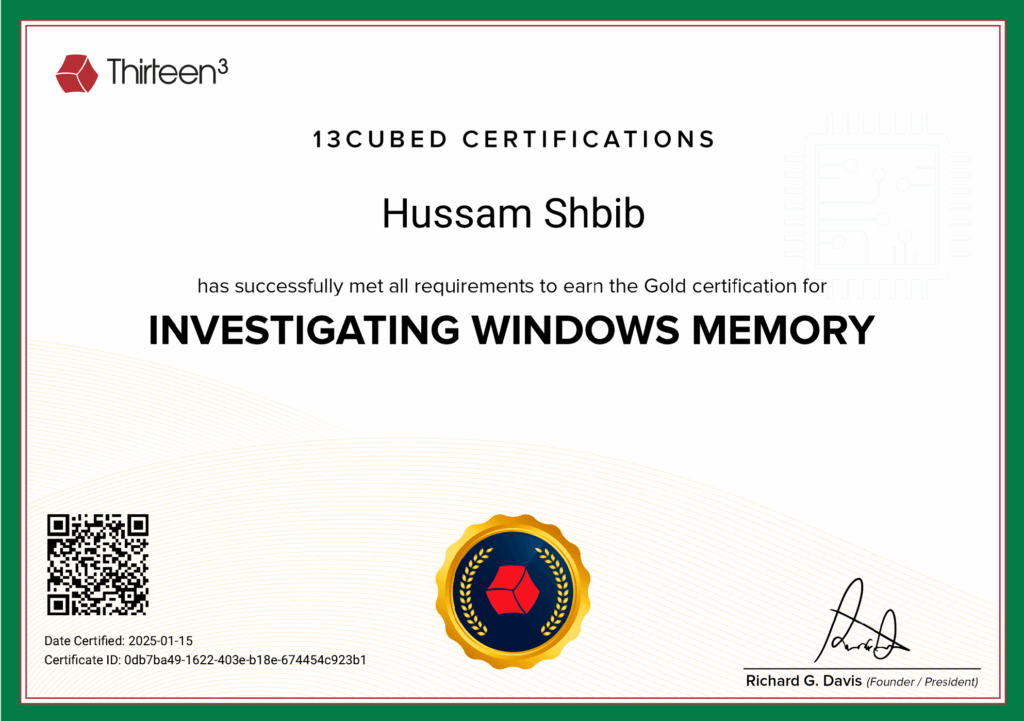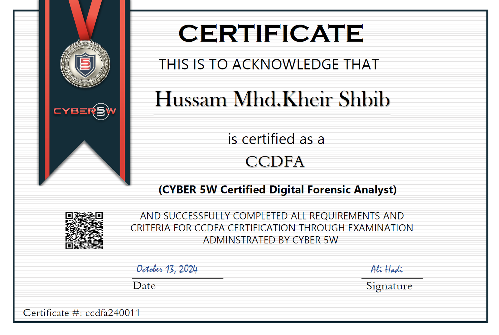 Husam Shbib holds several industry-recognized, hands-on cybersecurity and digital forensic certifications, including: